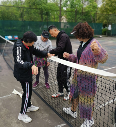 除日常清潔,謝淑蓉還承擔(dān)起義務(wù)開(kāi)門的職責(zé)。她總是最早開(kāi)門,最晚鎖門離開(kāi)。即便球隊(duì)只要求她負(fù)責(zé)上午時(shí)段,為方便下午打球的球友,她不惜往返七八公里,做到隨叫隨到。球場(chǎng)設(shè)施損壞時(shí),她也主動(dòng)維修,圍網(wǎng)脫落,她找來(lái)繩子爬上梯子固定;掃把撮箕壞了,她用木棍、線修補(bǔ)。