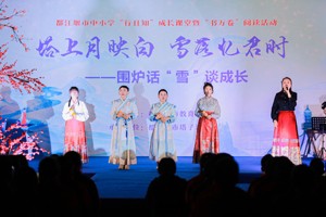 一朵朵“白雪”飄落在校園中,一首首詩歌回蕩在校園里,一場與雪有關(guān)的詩詞會在歌曲《落雪千山等歸人》中落下帷幕。然而,師生們圍坐的爐火依然炙熱,教室里的一盞盞燈火依舊明亮。雖不知,在這奎光塔下,大雪節(jié)氣時,灌縣學(xué)子的精神面貌和文學(xué)風(fēng)采是否令周公欣慰,但這卻是百年后文脈傳承,灌縣學(xué)子重學(xué)興文的好模樣。