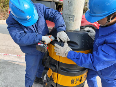 “這個(gè)防撞桶‘反光貼’很醒目,給電桿下端包上了一層保護(hù),安全多了!”工作人員唐斌在為一處電桿安裝了反光防撞桶后感慨地說。