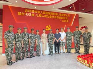 “榮縣有著‘雙擁’優(yōu)良傳統,‘金山礦業(yè)’也吸收了多名優(yōu)秀的退役軍人在公司就業(yè),他們在公司的各個崗位上表現出不怕吃苦、敢于吃苦、不講條件、執(zhí)行力強的諸多優(yōu)點,備受公司管理和員工好評,從他們身上,也看到了榮縣退役軍人的良好素質,今天送水果,提前祝你們‘八一’快樂!”副總經理陳靜代表公司這樣說。