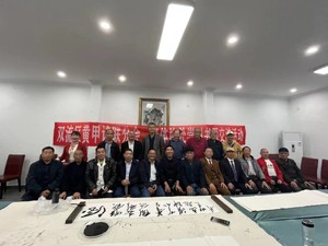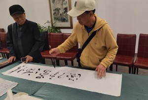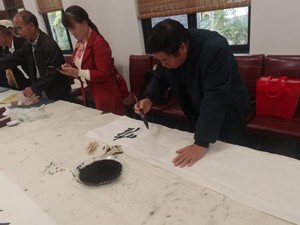 隨后,我們的會(huì)員們?cè)诮鹋璧鼐茦I(yè)集團(tuán)活動(dòng)廳舉行了我們的詩(shī)書(shū)畫(huà)相互交流學(xué)習(xí)活動(dòng),經(jīng)過(guò)1個(gè)多小時(shí)齊刷刷的寫(xiě)寫(xiě)畫(huà)畫(huà),會(huì)員們很快創(chuàng)出了盛贊金盆地酒的詩(shī)和其他題材的書(shū)法作品,比如,周良水老師現(xiàn)場(chǎng)創(chuàng)作的詩(shī):“黃葉菊香出雙流,一路歡歌赴崇州。金盆地里釀精品,一品江山在崇州。呤詩(shī)唱詞展書(shū)法,文化傳承醉不休。元通古鎮(zhèn)風(fēng)景美,祝賀老師安康壽”。還比如聶建華老師創(chuàng)作的書(shū)法“醉在金盆”、賈時(shí)光老師的“福滿(mǎn)金盆”等等,為了感謝金盆地酒業(yè)的盛情,我們將創(chuàng)作的所有作品贈(zèng)送給了東道主金盆地酒業(yè)集團(tuán),此舉受到了以李帝身同志為代表的廠方的高度贊揚(yáng)。