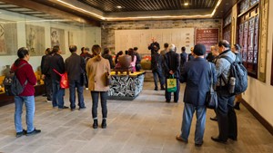 本次活動(dòng)由瑞眾保險(xiǎn)有限公司業(yè)務(wù)經(jīng)理雷蓉、黃甲街道詩(shī)詞楹聯(lián)分會(huì)會(huì)長(zhǎng)付仕水和分會(huì)秘書(shū)長(zhǎng)高勇剛?cè)煌編ш?duì),上午近10時(shí),我們的車(chē)到達(dá)崇州川酒文化博覽園金盆地酒業(yè)生產(chǎn)基地,受到了該基地相關(guān)負(fù)責(zé)人李帝身同志的熱情歡迎和接待,在賓主相互寒喧過(guò)后,李帝身同志帶領(lǐng)我們一行參觀了金盆地酒業(yè)的龐大規(guī)模令我們大家贊嘆,又聆聽(tīng)了該企業(yè)的發(fā)展情況介紹,他還向我們講述了川酒文化和川酒歷史。使我們對(duì)酒歷史和酒文化有了深刻的了解。