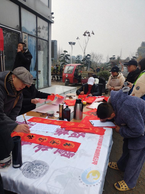 春節(jié)來臨之際,成都市郫都區(qū)老科協(xié)助推鄉(xiāng)村振興老黨員工作室再次舉行了“文化下鄉(xiāng),春聯送?!被顒?。郫都區(qū)安德街道安龍村是老科協(xié)助推鄉(xiāng)村振興老黨員工作室的服務基地之一,郫都區(qū)老科協(xié)長期在此為村民服務。近日,由老科協(xié)副會長兼詩詞專委會主任彭國華帶隊,與黃文成、江志安、程洪英一起為村民寫春聯送祝福。