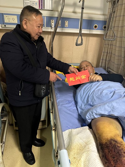 2025年1月11日至13日,在新的農(nóng)歷一年到來之際,興文縣老科協(xié)反邪協(xié)黨支部書記、會(huì)長彭屏委托副書記李立權(quán)前往該縣光明新城華府公園小區(qū)看望慰問身患重病的老科協(xié)教育專委會(huì)副主任、黨員趙其云;到西南醫(yī)科大學(xué)附屬中山醫(yī)院慰問看望騎小黃車路滑摔倒膝關(guān)節(jié)骨頭嚴(yán)重受傷住院(正在消腫,等待手術(shù))的老科協(xié)農(nóng)業(yè)農(nóng)村專委會(huì)黨員葉念紅,分別向他們轉(zhuǎn)達(dá)了協(xié)會(huì)、黨支部全體黨員、會(huì)員的親切問候,祝他們早日康復(fù)!新年快樂!(興文縣老科協(xié)反邪協(xié) 李立權(quán))
