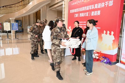 “您好,歡迎來(lái)到榮縣,我?guī)湍嵝欣?!”“您好,這邊報(bào)到,報(bào)到后我引您去吧臺(tái)領(lǐng)取房卡。”文明的語(yǔ)言、熱情地服務(wù),以東道主身份出現(xiàn)的自貢“江姐老兵”志愿服務(wù)隊(duì)榮縣分隊(duì)的隊(duì)員們,3月31日午后,就身著整潔的迷彩志愿服,協(xié)助市縣退役軍人事務(wù)局工作人員,在榮縣松悅酒店迎接著來(lái)自川南片區(qū)10個(gè)市州11個(gè)代表隊(duì)的軍隊(duì)離退休門球運(yùn)動(dòng)員。