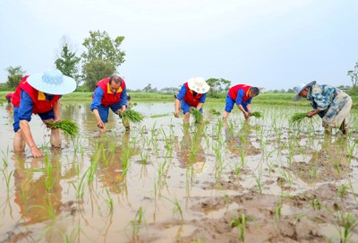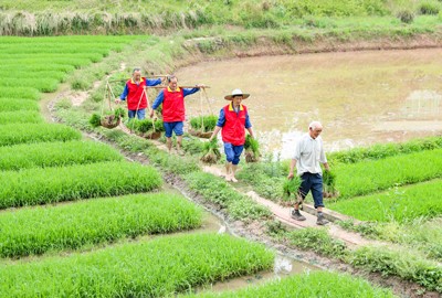 2025年4月21日,國家電網(wǎng)四川省華鎣市供電公司“連心橋”共產(chǎn)黨員服務隊,在供區(qū)伏龍鎮(zhèn)清鳥石村幫助缺勞農(nóng)戶移栽秧苗。