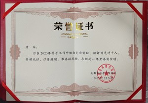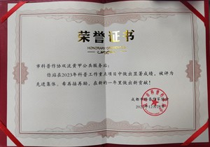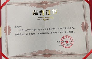 雙流區(qū)老科協(xié)達鵬福和黃甲麻羊協(xié)會秘書長、工作站站長、文廟社區(qū)黨員唐軍榮獲先進個人獎,其內(nèi)容是:“在2023年科普工作中做出突出貢獻,被評為先進個人,特頒此證,以資鼓勵。希再接再勵,在新的一年里再創(chuàng)佳績?!?/p>