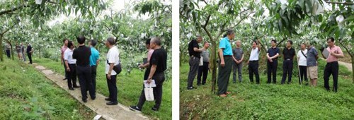 劉剛會(huì)長(zhǎng)一行深入天源康樂(lè)家庭農(nóng)場(chǎng)小水果生產(chǎn)基地,實(shí)地查看了解果樹(shù)生長(zhǎng)情況、修枝整形實(shí)地培訓(xùn)效果、水果長(zhǎng)勢(shì)情況等,并與市農(nóng)業(yè)職業(yè)經(jīng)理人協(xié)會(huì)副會(huì)長(zhǎng)、“都江堰市天源康樂(lè)家庭農(nóng)場(chǎng)”負(fù)責(zé)人趙之元及相關(guān)人員座談交流。