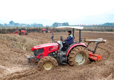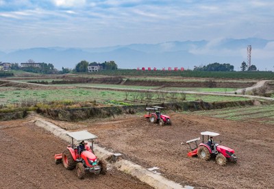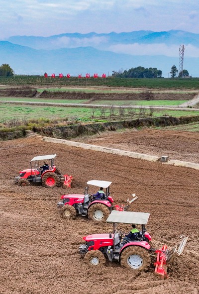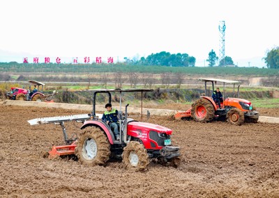 2025年2月3日,四川省華鎣市華龍街道東方村的農(nóng)民駕著“鐵?!痹谔镩g“犁春?!保瑒油练r(nóng)田迎接“立春”。